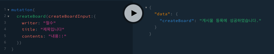 Query 를 등록, 수정, 삭제할 때는 Mutation 을 사용한다. typeorm의 Query와 Mutation을 데코레이터 형태로 사용했다.@Args('writer') writer: string,