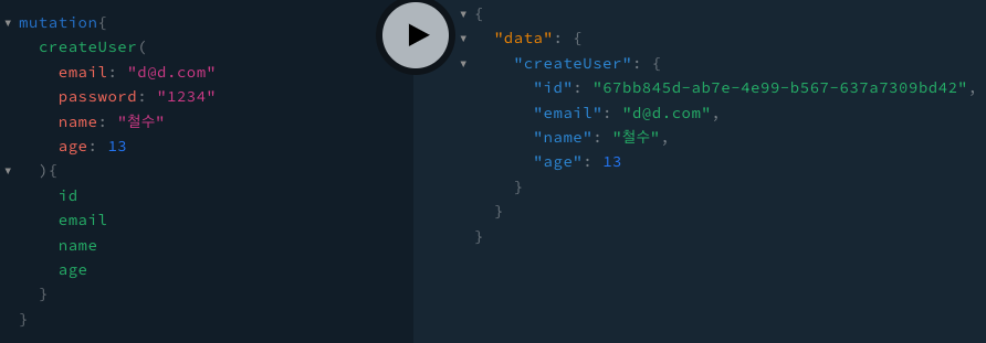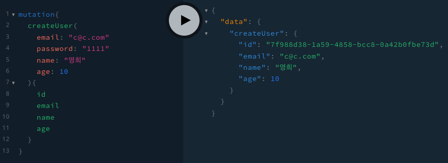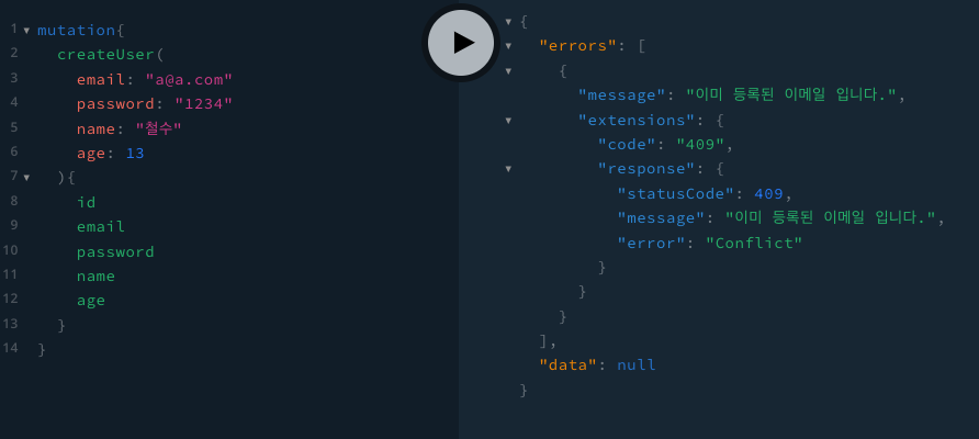 플레이그라운드에 접속해 회원가입 api를 요청했을 때, 아래와 같이 결과가 나오고
