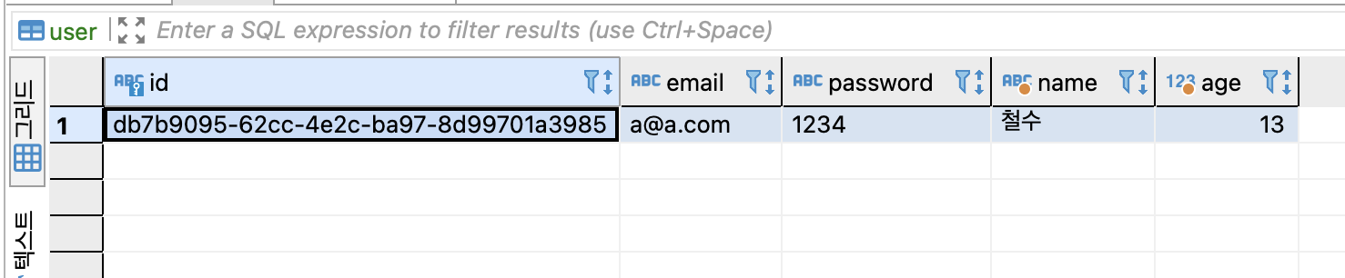 DBeaver를 실행시켰을 때 다음과 같이 데이터가 잘 생성되었다면 회원가입이 성공한 것이다.