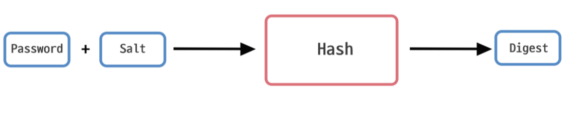 Password 123456 을 해시 함수에 돌려서 다이제스트인 fs32a3xzz0 을 생성하고 해당 데이터를 DB 에 저장한다.