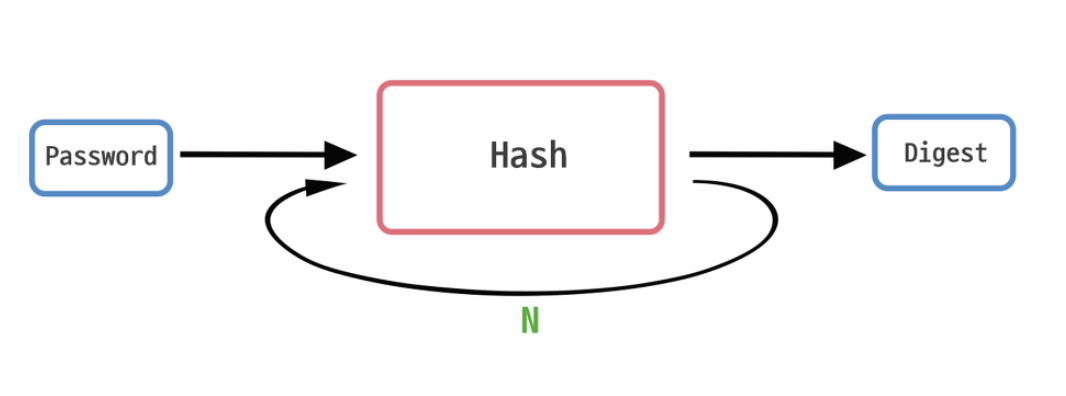 Key Stretching(키-스트레칭)은 개발자가 해싱하는 횟수를 정해서 Hash 함수를 돌리는 방법으로 패스워드를 저장할 때 가장 쉽게 생각 할 수 있는 방법이다.