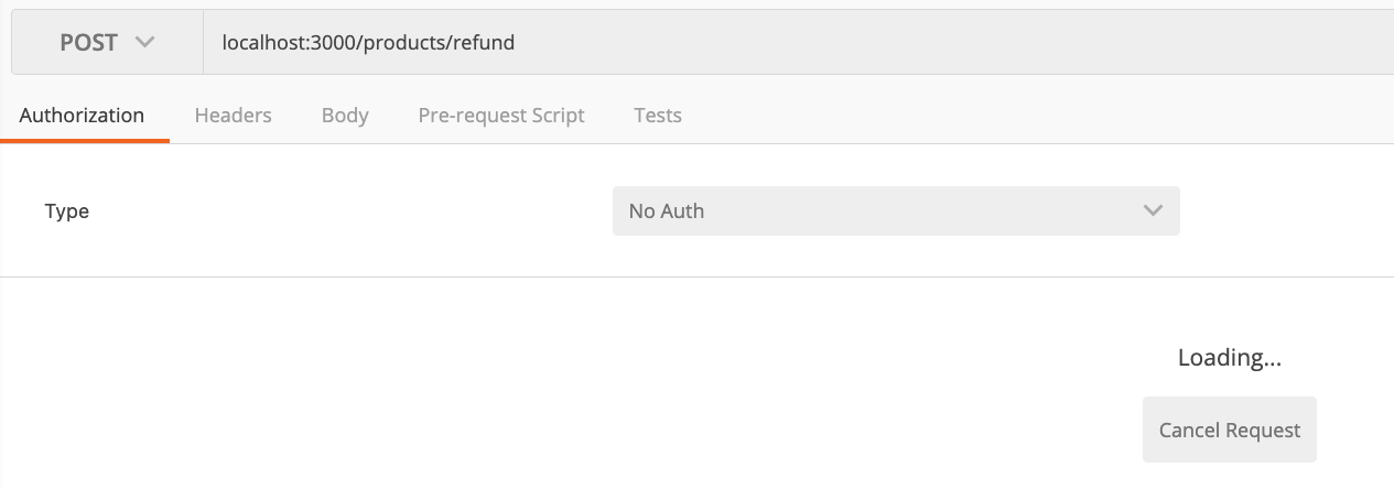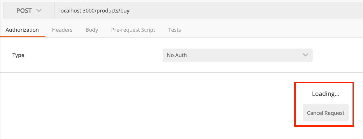 앞서 확인한 포스트맨이 아직 Loading 중이라면 Cancel Request 를 눌러줘서 Loading 을 중단시켜준다.