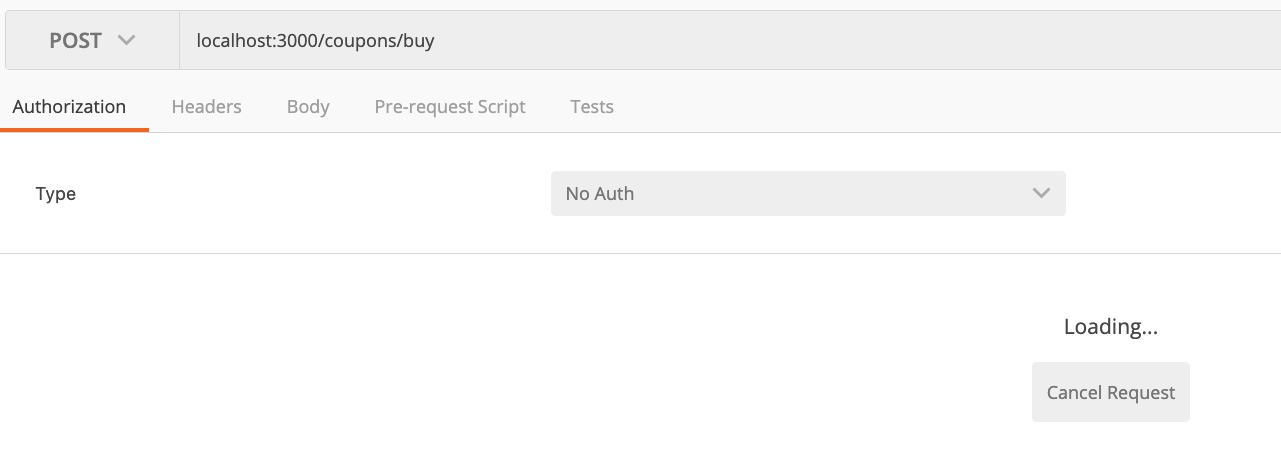 POST 방식을 선택하고 localhost:3000/coupons/buy 작성하여 Send 버튼을 눌러 요청한다.