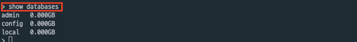 show databases- 몽고 db의 현재 database 를 확인할 수 있다.