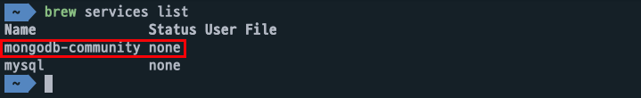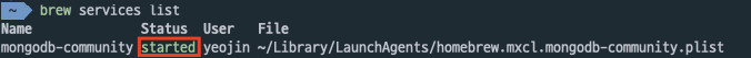 접속 전에 MongoDB가 켜져있는지 확인해야 한다. brew services list 혹은 brew services로 확인해보자