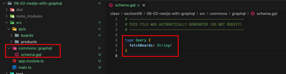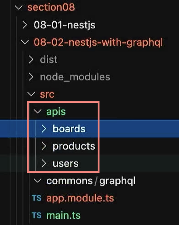 폴더 이름을 08-02-nestjs-with-graphql 폴더로 변경한 후, src 폴더 안에 boards 폴더를 만들어준다.