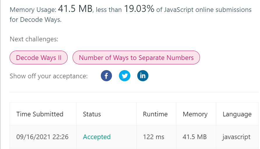 그 이외에는 dp[0]=1 을 해주고 "28" 같은 경우는 dp[1] = dp[0], "21" 같은 경우는 dp[1] = dp[0]+1 을 해준다.
