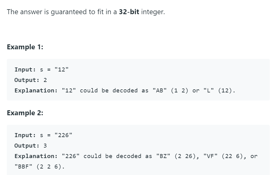 s의 i-1부터 i까지의 글자가 0이 들어가지 않고 26보다 작은 경우, 예를 들어 "13" 이런 경우는 dp[i] = dp[i-1] + dp[i-2] 를 해준다.