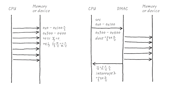 CPU가 데이터를 전송할 때 일일이 신경을 쓰면 그만큼 속도도 나오지 않을 뿐 더러, CPU가 다른 일을 못하고 데이터 전송하는 일을 해야 하니까, 전체적이 System 성능에 악영향을 미칩니다.