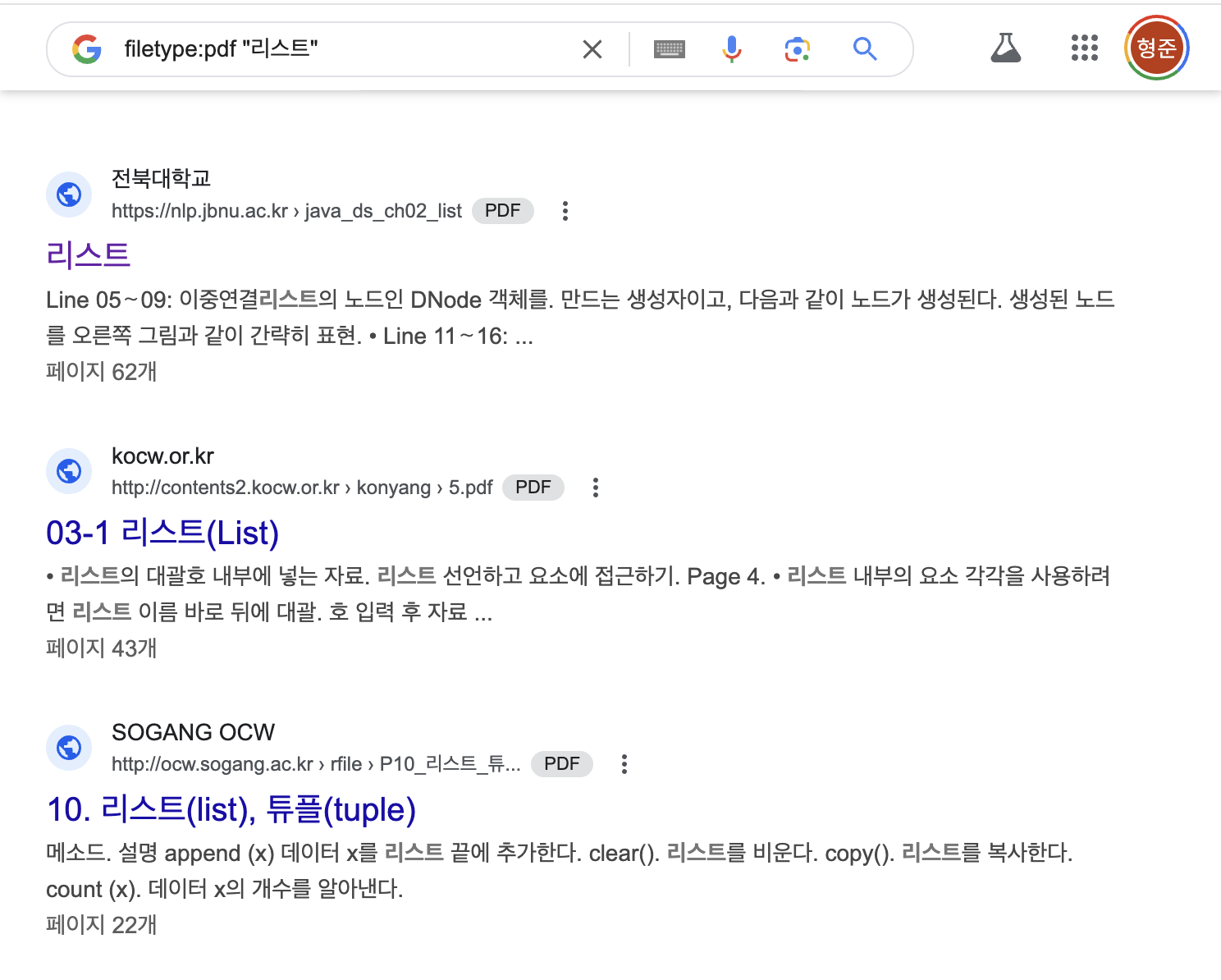 예: filetype:pdf "보고서"
