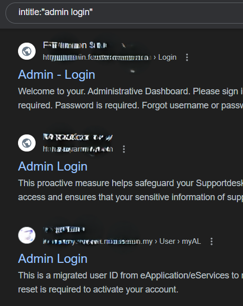 예: inurl:admin login