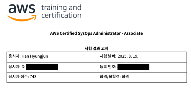 두 달간 공부한 끝에 AWS SysOps Administrator 자격증을 취득하였다. 이 글은 이 자격증을 취득한 이유와 취득한 방법, 추후 계획에 대한 글이다.