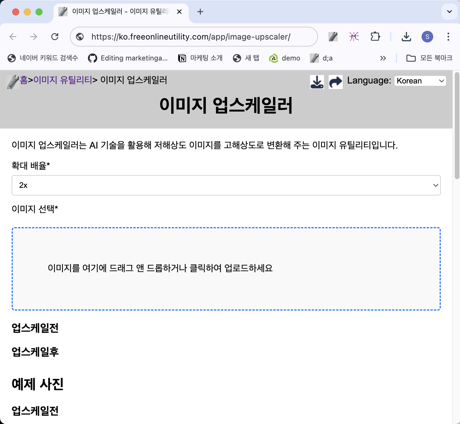 이미지 업스케일러는 저해상도 사진을 고해상도로 변환해주는 무료 온라인 AI 도구입니다. 별도의 프로그램 설치 없이 웹 브라우저만으로 간편하게 사용할 수 있으며, 누구나 쉽게 선명한 이미지를 얻을 수 있습니다.