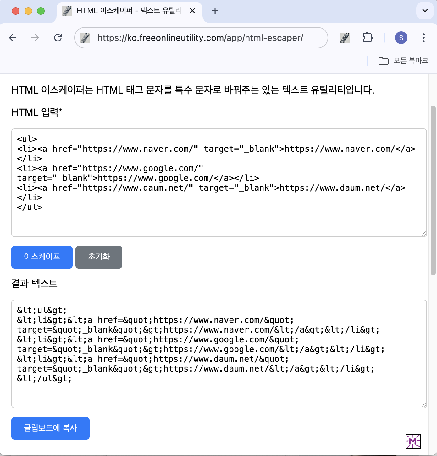 지금 바로 HTML 이스케이퍼를 사용해 보세요!