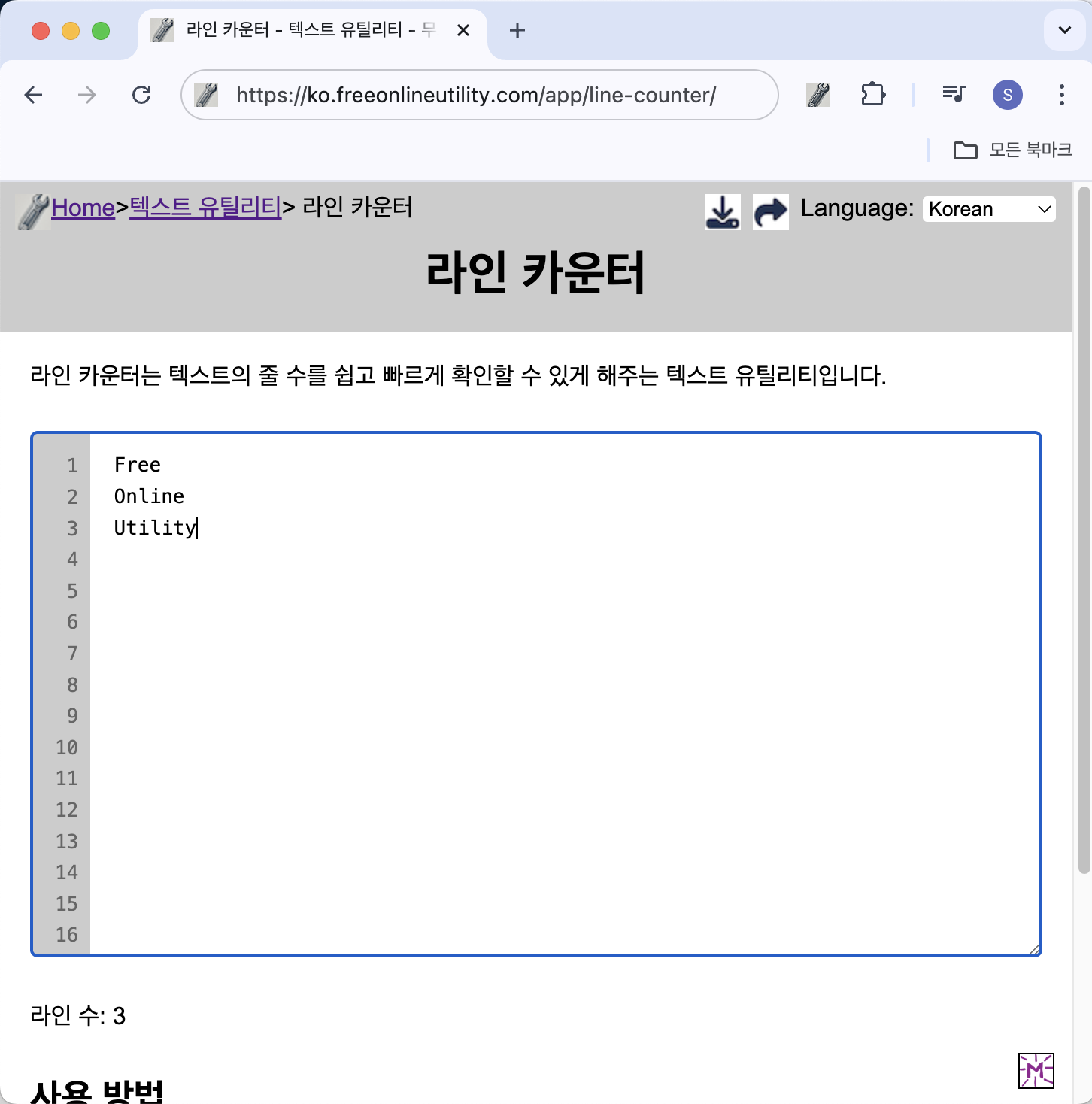 코드 작성 시 줄 수를 체크하거나 문서의 총 줄 수를 확인하는 등 여러 가지 용도로 활용할 수 있습니다. 특히 개발자, 작가, 편집자들에게 유용합니다.