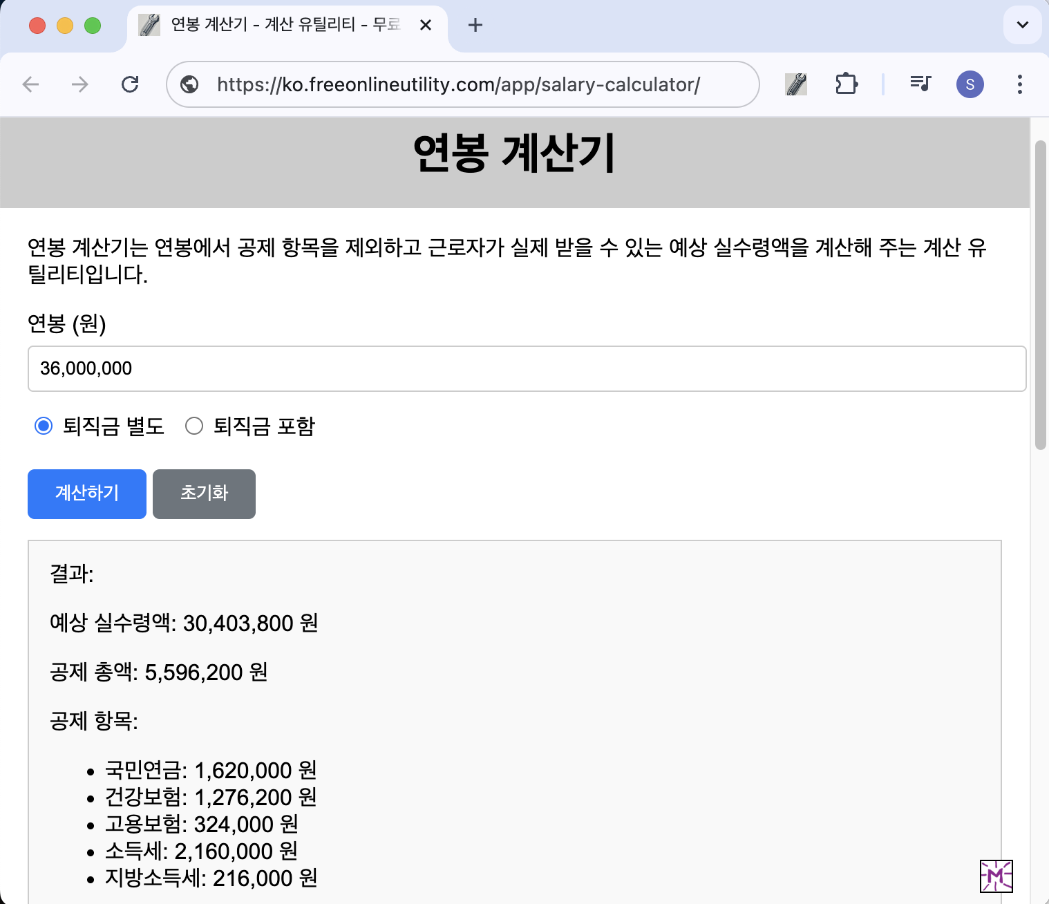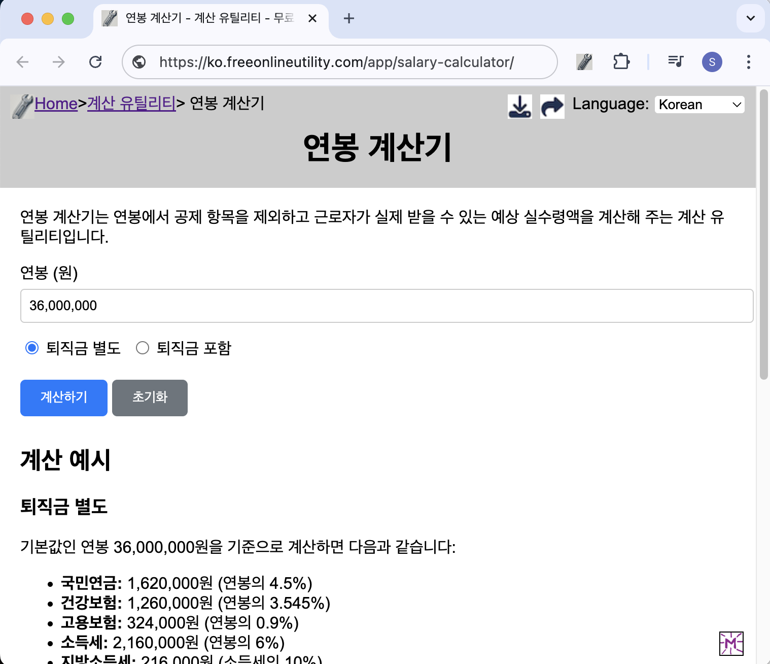 연봉 계산기 가기