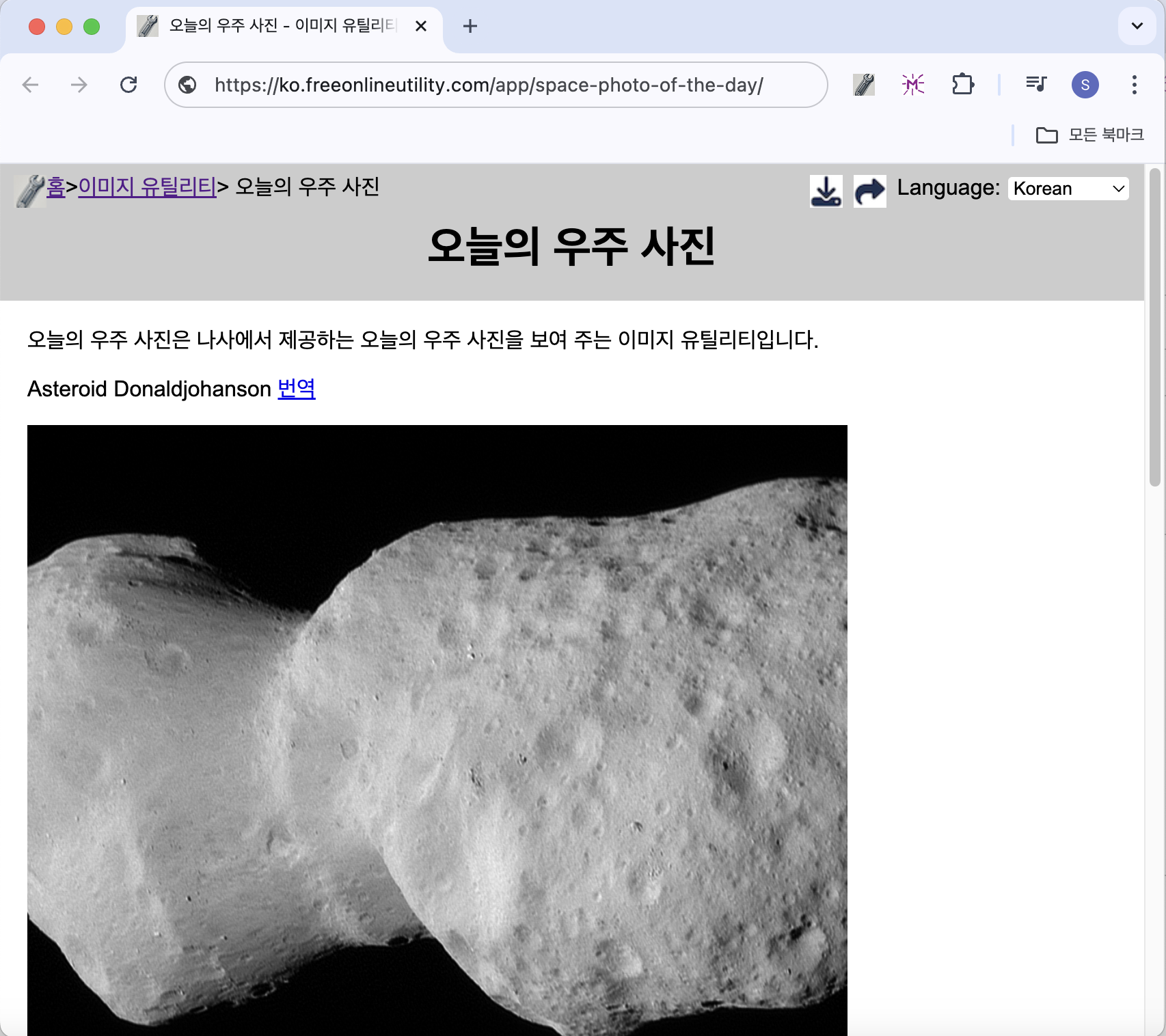 - 오늘의 우주 사진 페이지로 이동합니다.