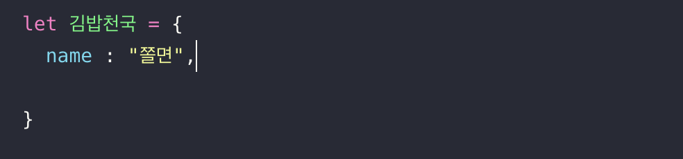 김밥천국이라는 객체에 eat이라는 프로퍼티를 만들고