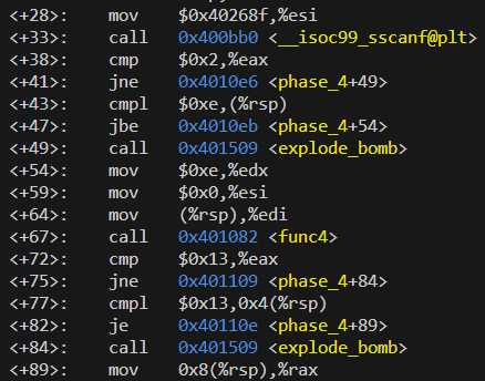 입력값 , , ... , 는 각각 %rsp, 0x4(%rsp), .. , 0x14(%rsp) 와 대응된다.