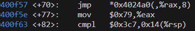 0x4024a0 이 0x400f5e 이므로 0 y 967