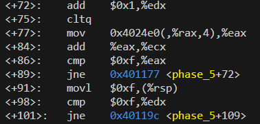 + %eax == 을 확인하므로 0 1 3 6 10 15