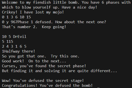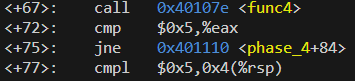 0x4(%rsp)가 0x5 이고 secret_phase까지 해서 10 5 DrEvil
