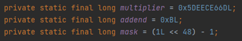 mask와 AND 연산을 하면 하위 48비트만 취한다는 것으로 Random 객체의 seed의 값은 48비트로 표현할 수 있는 수가 된다.