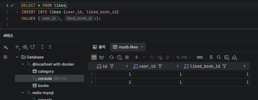 fk를 두 개 갖고있는 좋아요 테이블을 만들었어요.