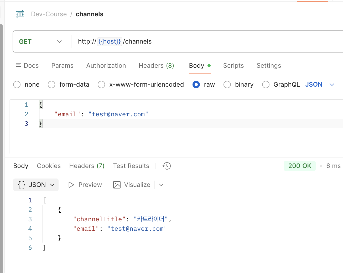 기존 api에, email을 기반으로 해당 유저의 채널을 조회하는 GET /channels를 추가하려고 해요.