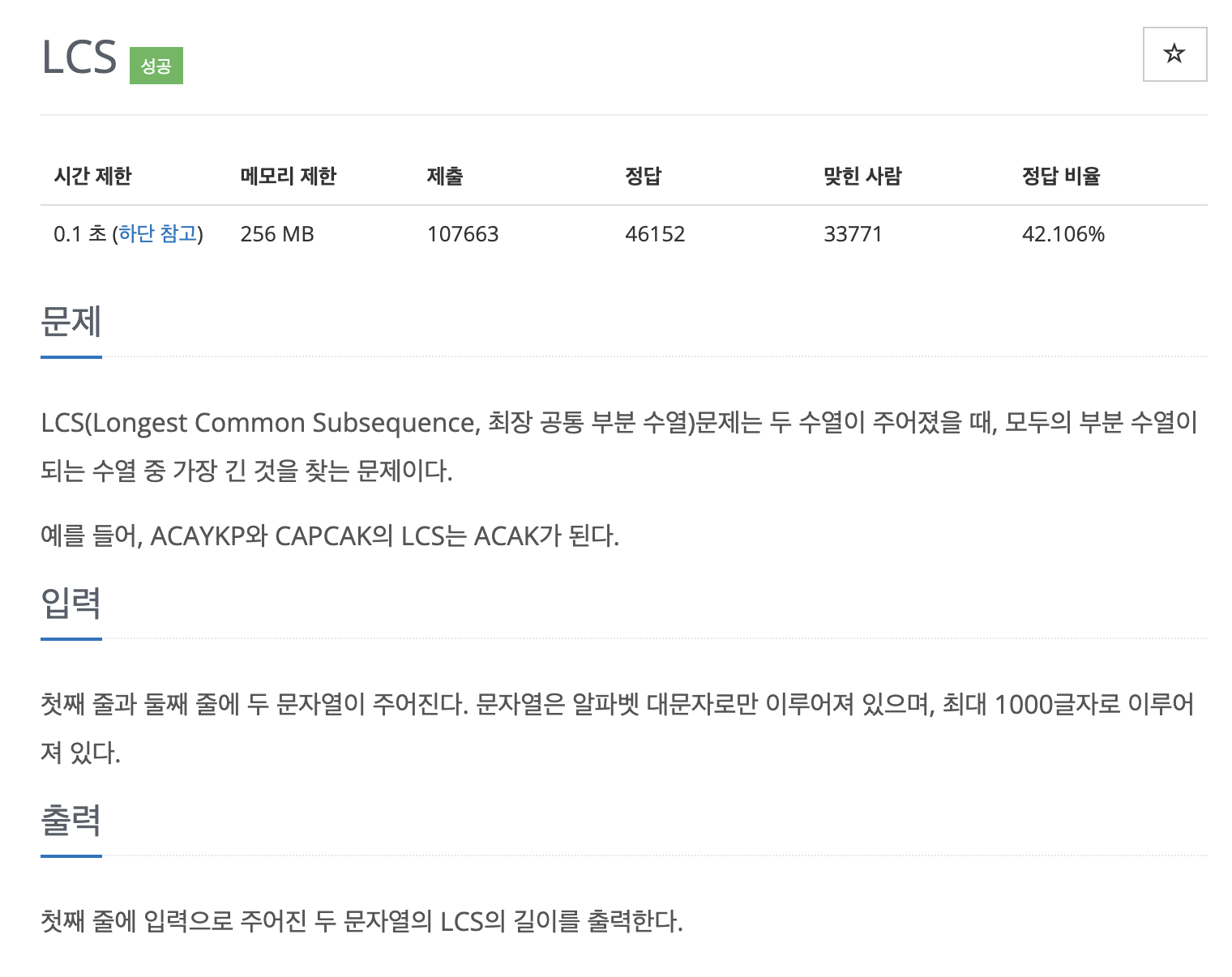 이 문제는 대표적인 DP(dynamic programming) 방식으로 LCS(Longest Common Subsequence) 를 찾는 문제이다.