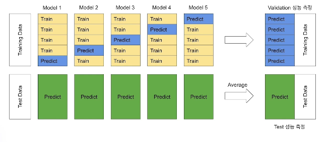 모델 Training시 Cross Validation을 적용해서 Out of Fold Validation 성능 측정 및 Test 데이터 예측을 통해 성능 향상
