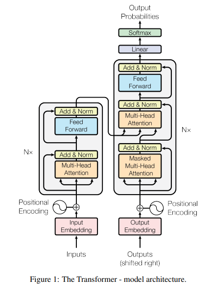 - 인코더, 디코더 가장 하단에서 input 임베딩 + positional encodings