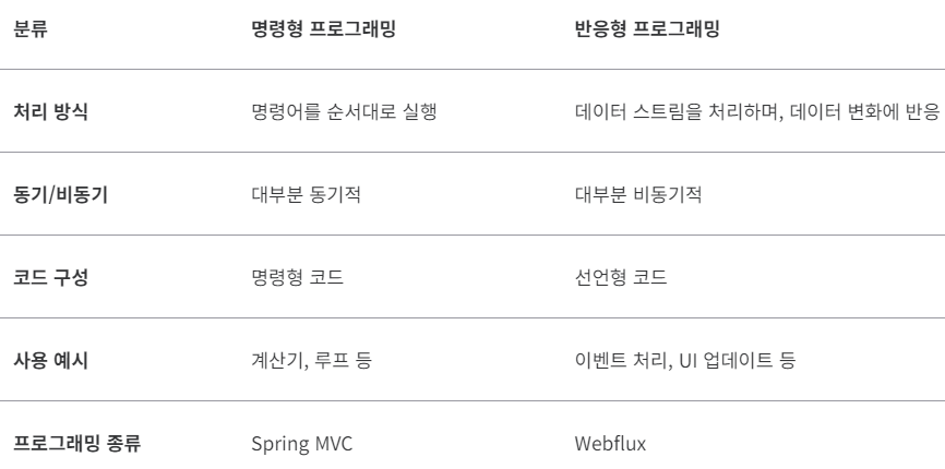 - 반응형 프로그래밍을 통해 '높은 처리량'과 '확장성'을 갖는 애플리케이션을 만드는 것을 목표