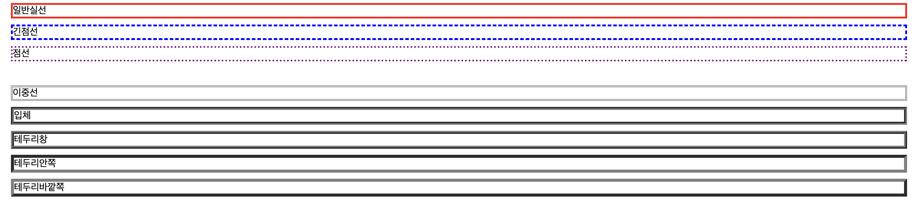 border : width선의 굵기 style선의 스타일 border-color선의 색상*/