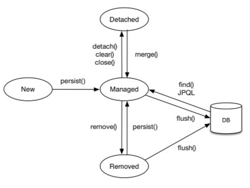 Persistence Context와 전혀 관계가 없는 transient, removed로 나눠집니다.