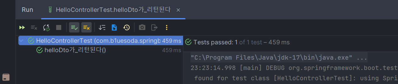 마지막으로 추가된 API를 테스트하는 코드를 HelloControllerTest에 추가해 보겠습니다.