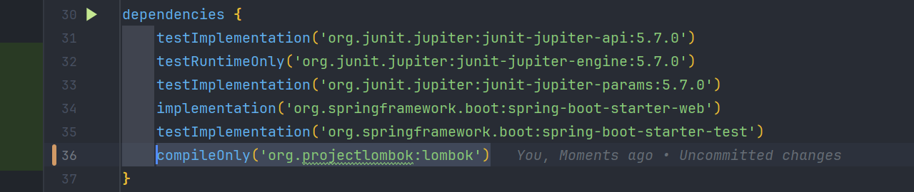 롬복을 사용하기 위해서는 build.gradle에 의존성을 추가해 주어야 합니다.