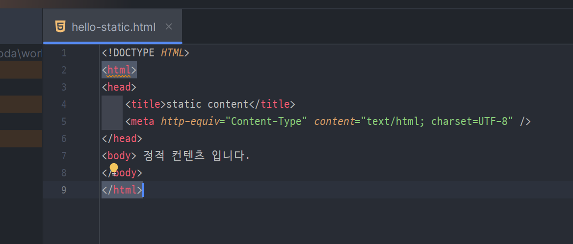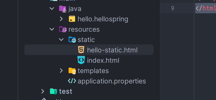 그렇다면, 직접 확인을 해보기 위해 /static폴더에 hello-static.html파일을 생성해주고