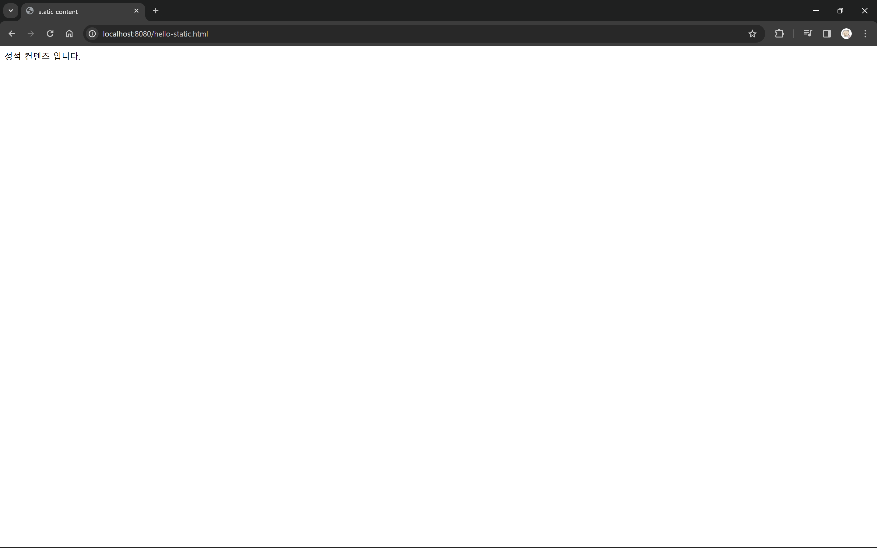 이렇게 정적 컨텐츠는 /static폴더에서 요청한 html파일을 가져와 그대로 브라우저에 보여줍니다.