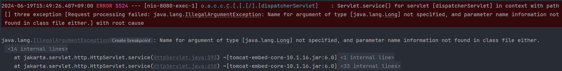 url로 특정 파라미터를 받아 CRUD API를 테스트하는 과정에서 이런 오류가 발생했습니다.