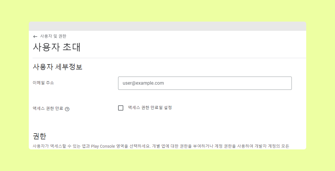 Google Play Console에서 "사용자 및 권한" 탭에 들어가준다.