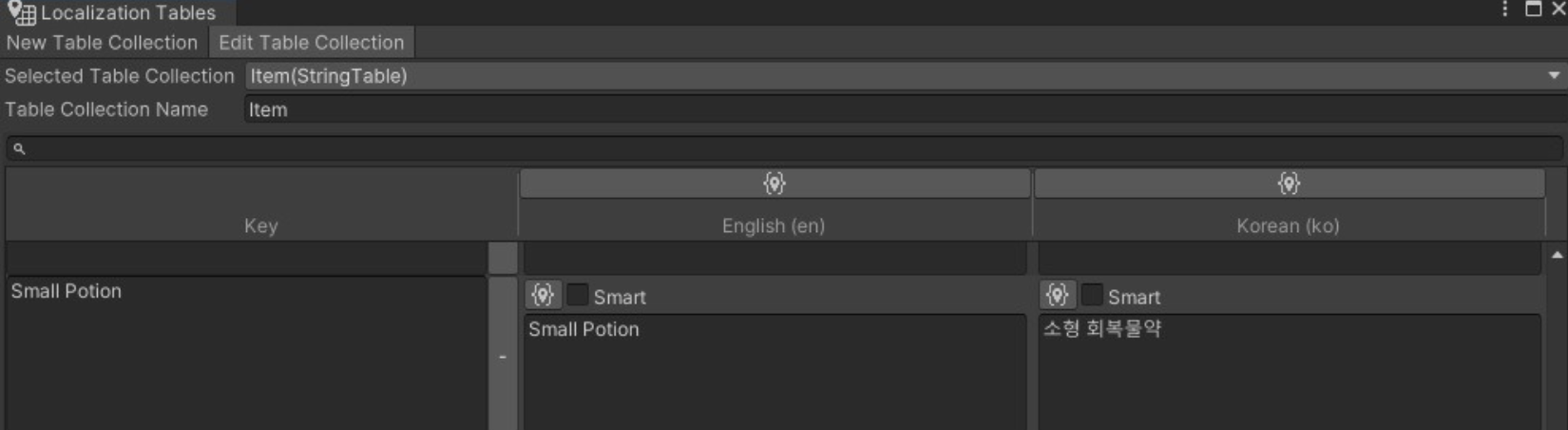 -> string tableName : 바로 위에서 만들어 두었던 Item 내용의 번역이 들어가 있는 Table명