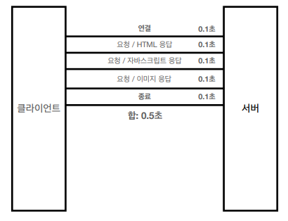 TCP/IP 연결을 새로 맺어야함 - 3way handshake 시간 추가