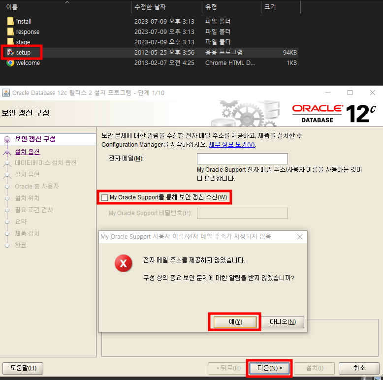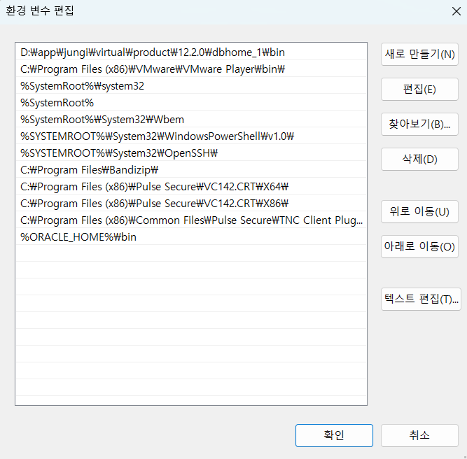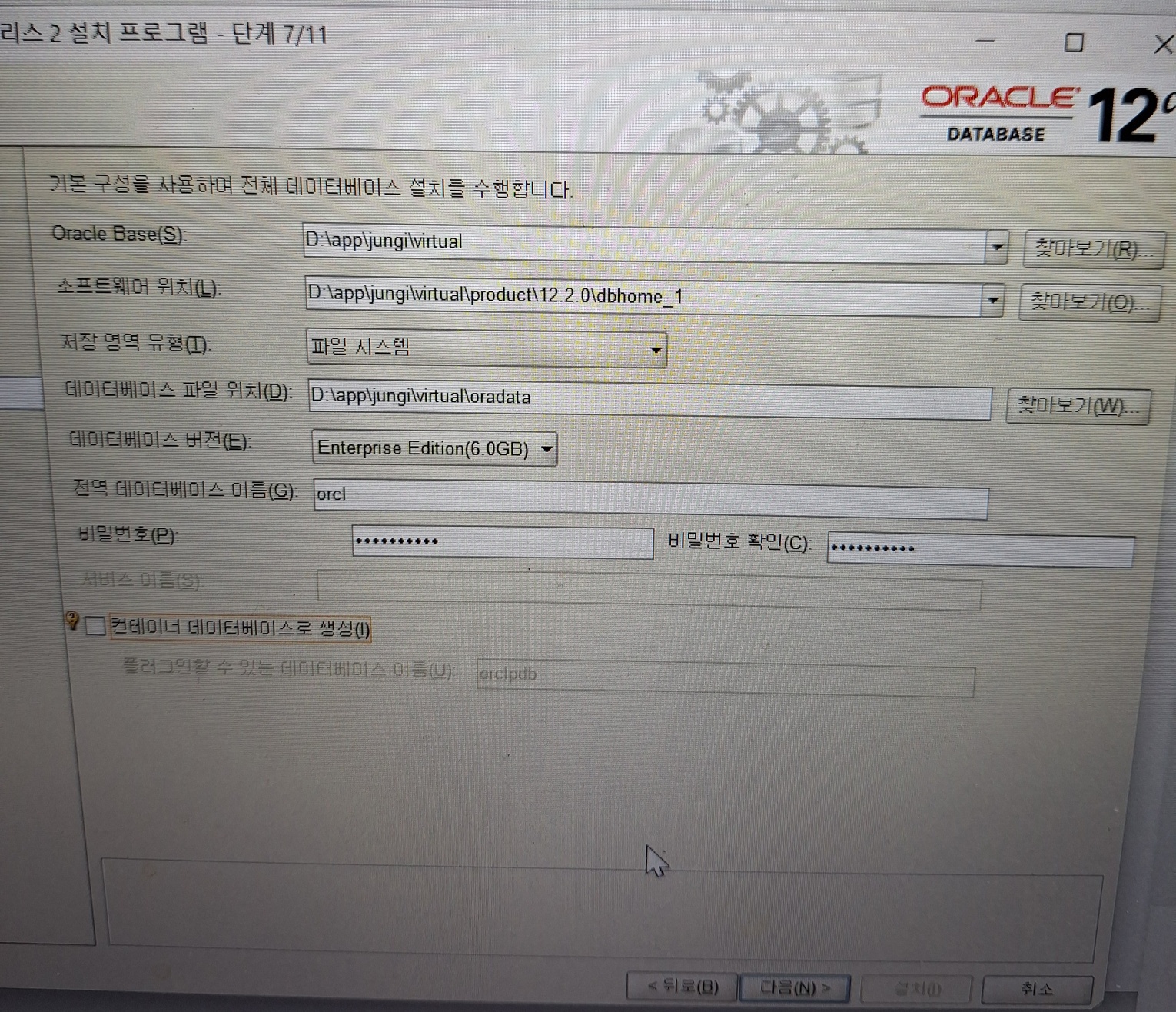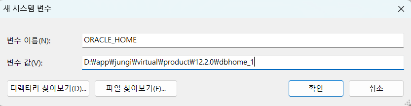 그렇지 않으면 오라클 경로 설정에서 계속 문제가 발생하여 설치가 진행되지 않는다.
