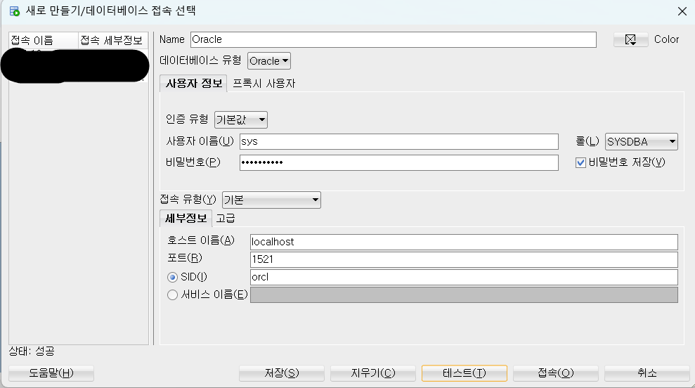 를 통해 접속 테스트를 시도한 이후에 접속한다.