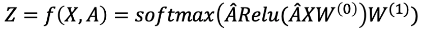 ‘Semi-Supervised Classification with Graph Convolutional Networks’(논문링크, 블로그링크)에서 두 층으로 된 신경망을 제안하는데 아래 식으로 정리할 수 있다