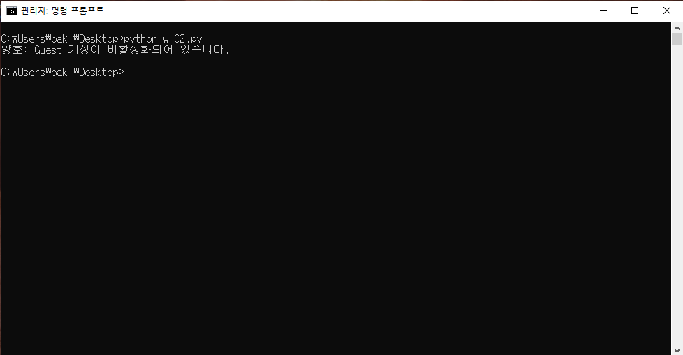 윈도우 cmd를 통해 실행시킨 결과 '양호'가 나왔습니다.