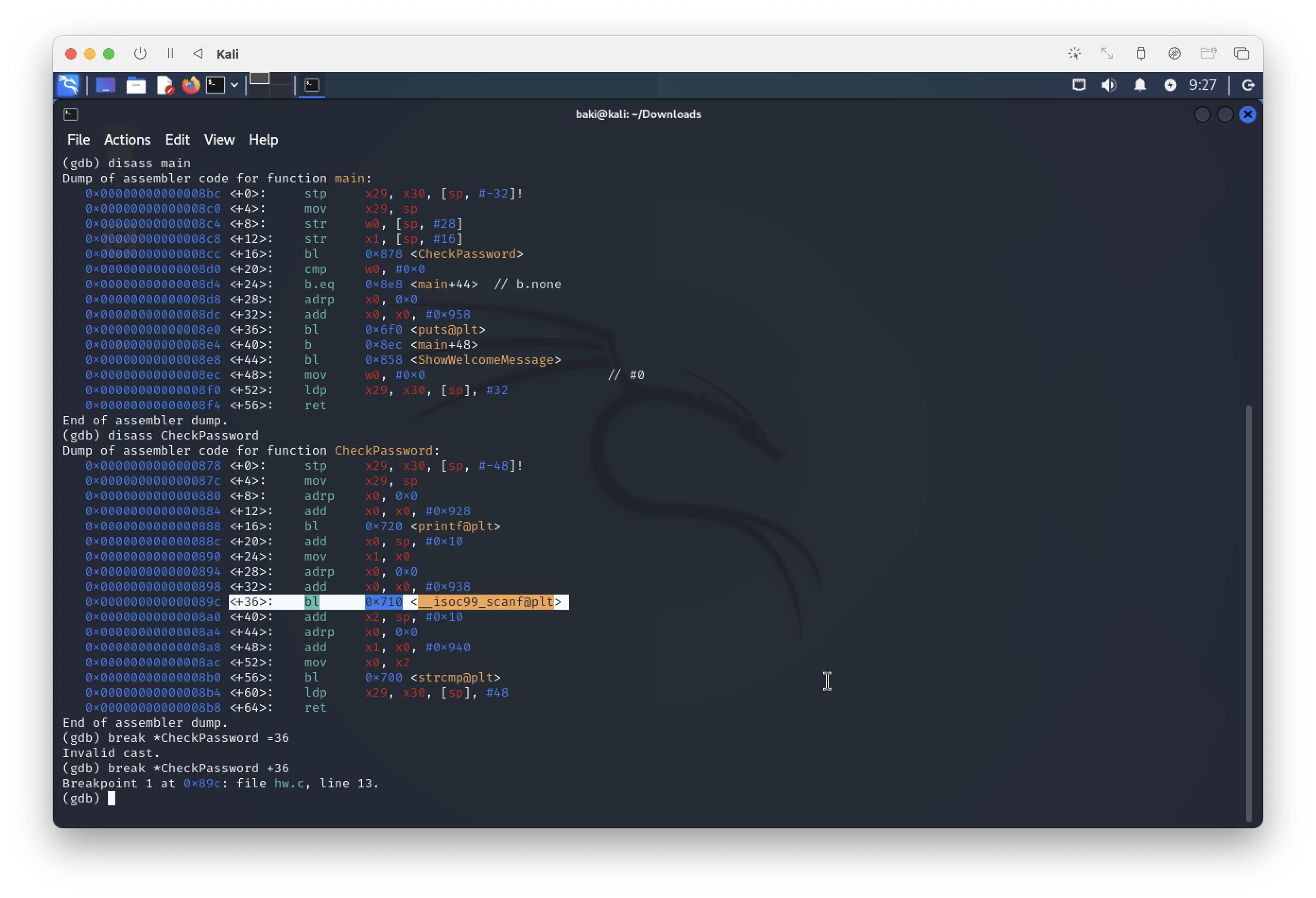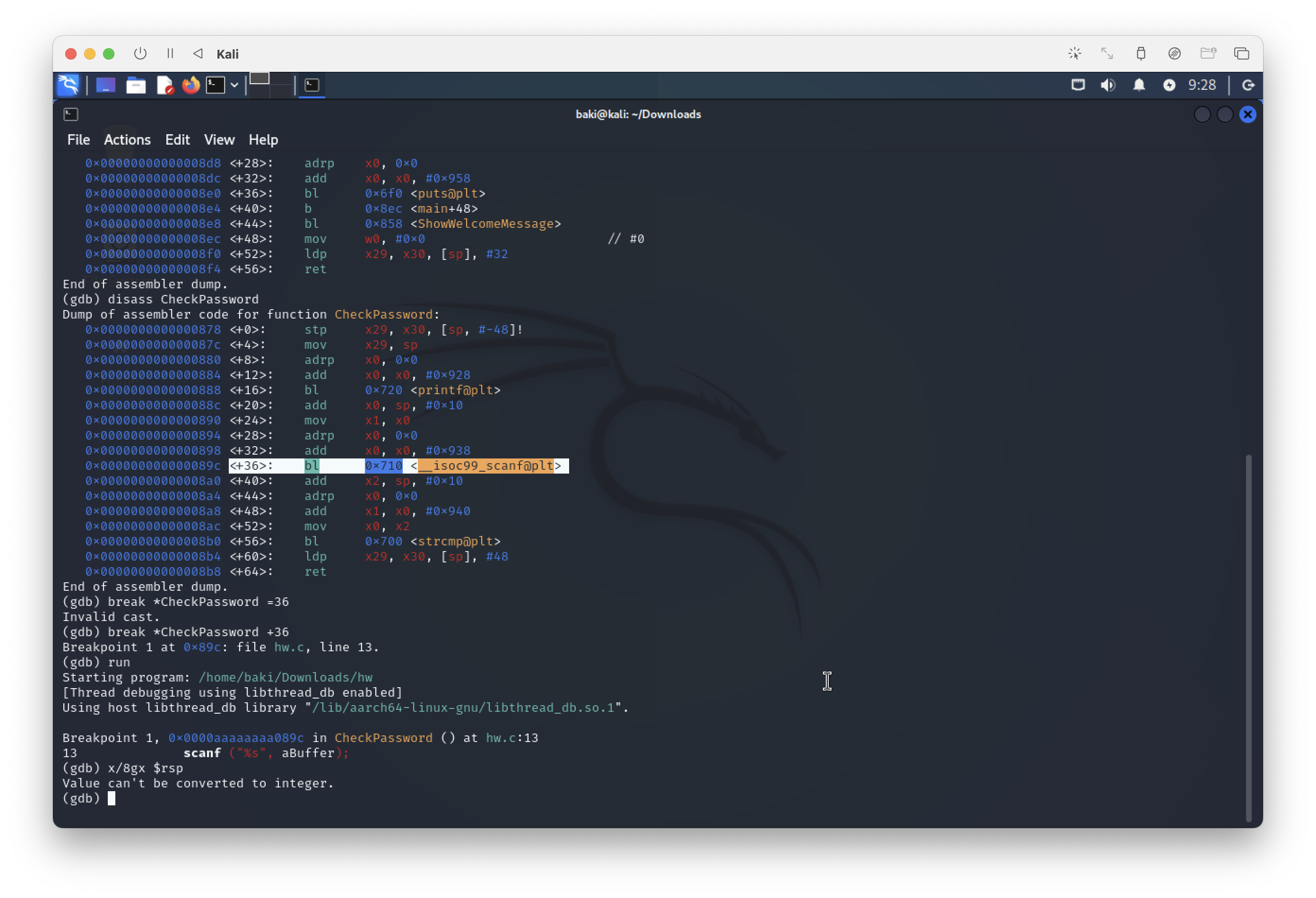 찾아보니 내가 쓰고 있는 맥북의 아키텍쳐가 arm이라 gdb 사용법이 조금 다른 것 같았다. arm와 amd가 사용하고있는 빅엔디안(?) 방식이 다르다고 한다.