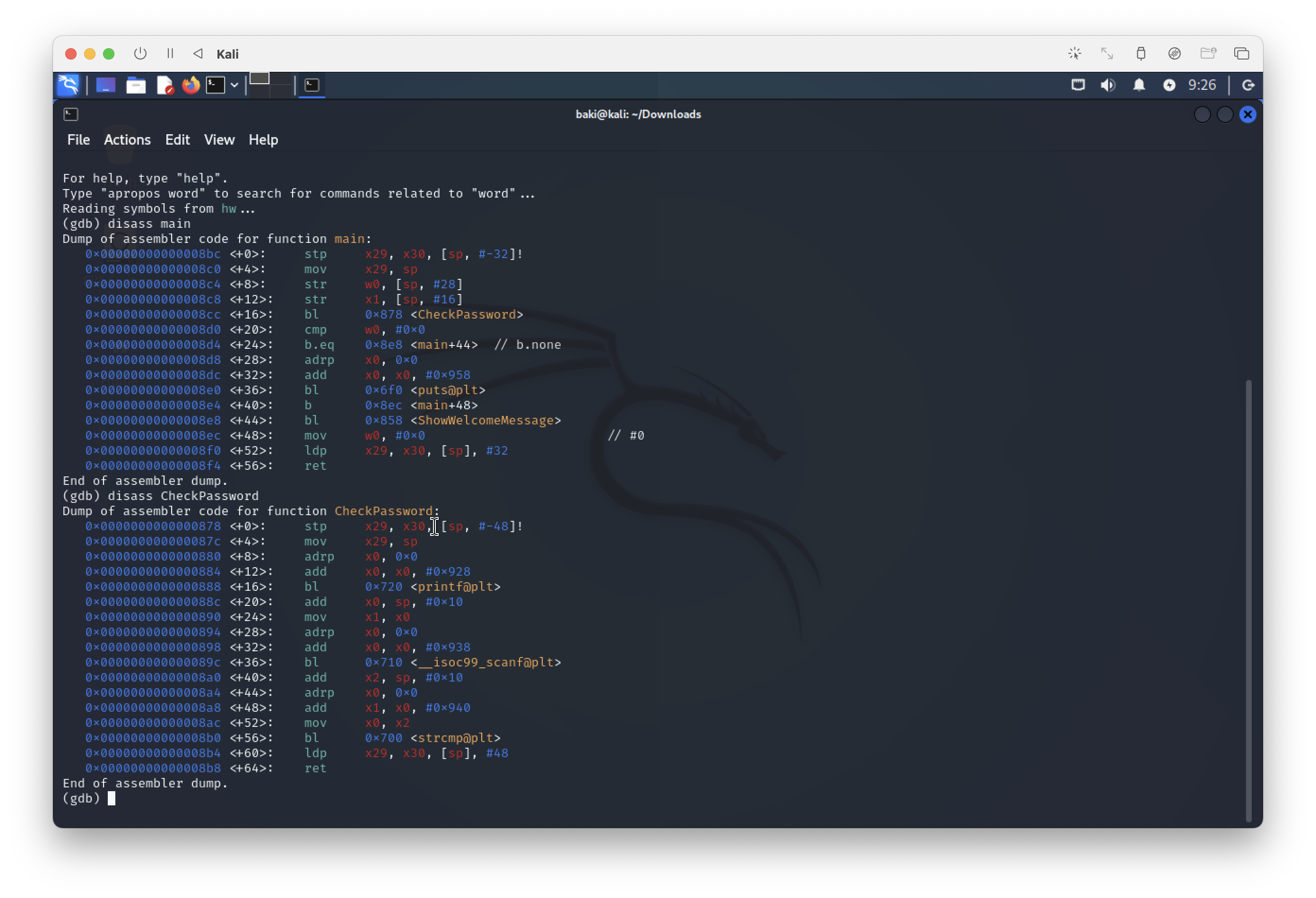 gdb접속 후 disass 명령어를 이용하여 main과 CheckPassword를 확인해보았다.