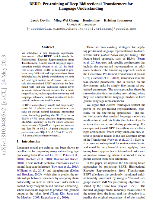 **Jacob Devlin** **Ming-Wei Chang** **Kenton Lee** **Kristina Toutanova**